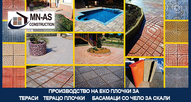- Производство на еко плочки за тераси, терацо плочки, басамаци со чело за скали­­