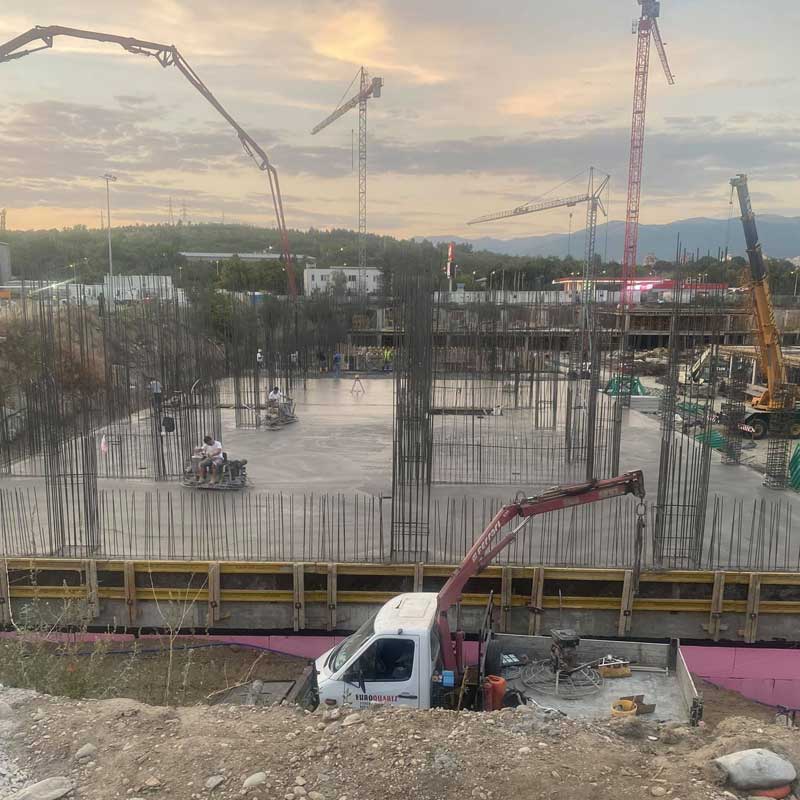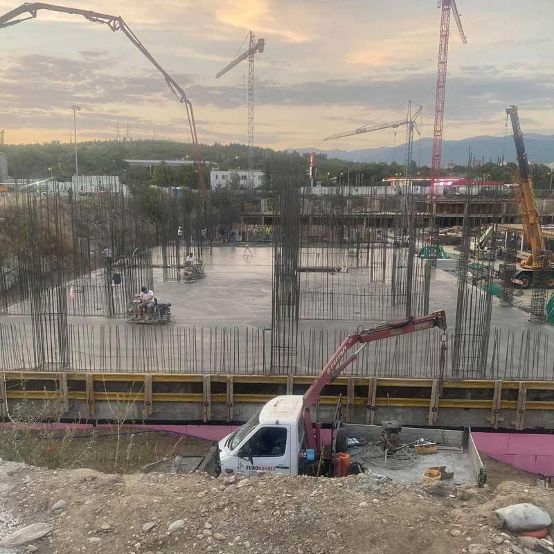 VE QUARTZ dooel врши изведба на поставување бетонска основа на големи градежни објекти.