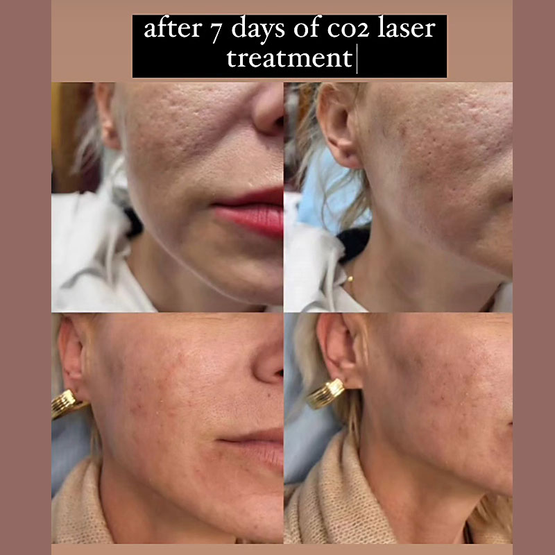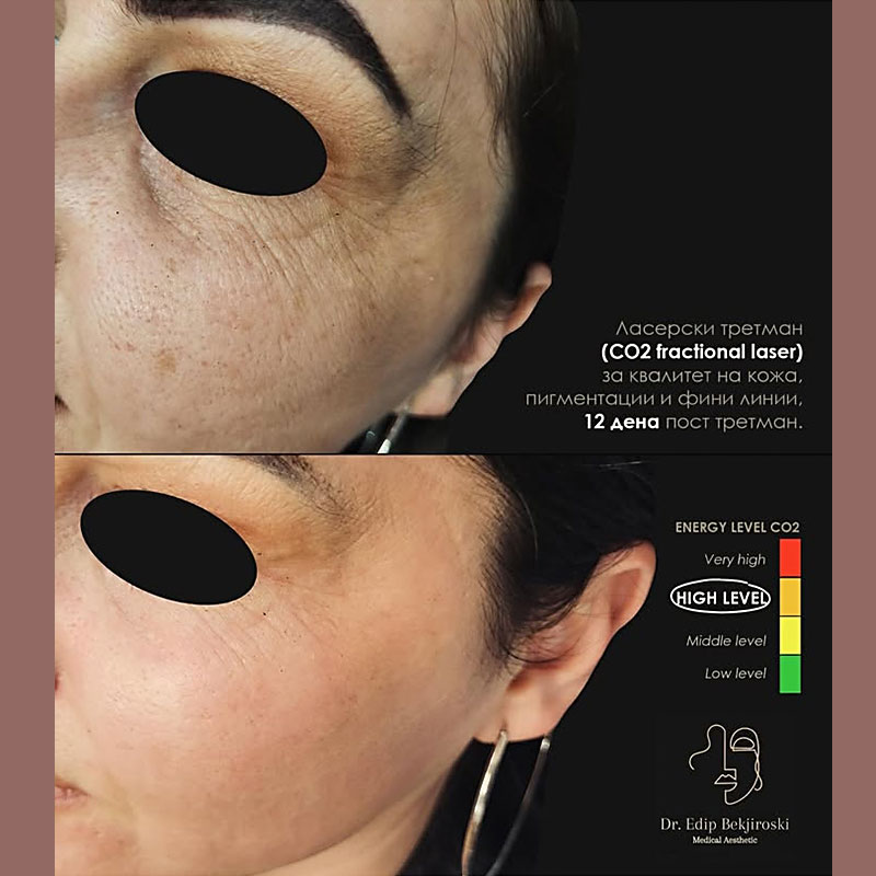 Процедурата со CO2 фракциониот ласер е минимално инвазивна и може да има одредено време на опоравување, зависно од интензитетот на третманот. По третманот, пациентите може да се соочат со привремено црвенило, оток или пилинг на кожата, но резултатите се видливи во рок од неколку недели до месеци, кога кожата изгледа појасна, посвежа и помлада.