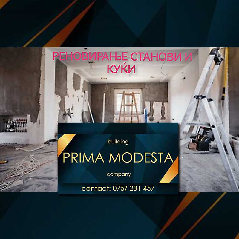 PRIMA MODESTA е градежна компанија специјализирана за целосна изведба и реновирање на сите видови објекти – од темел до кров, по систем „клуч на рака“.