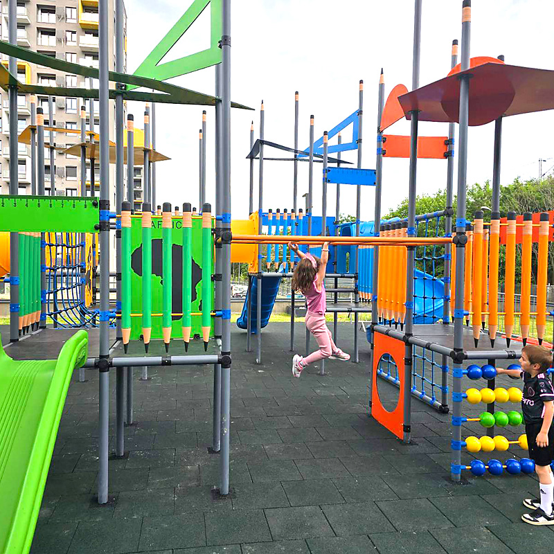 Системот за играње „Бесплатен кафез“ им овозможува на децата и на возрасните слобода за играње и учење преку слободни движења на предметите во игралиштето на отворено. Овој уникатен систем за игра го подобрува физичкото и менталното здравје на децата и ги стимулира когнитивно.