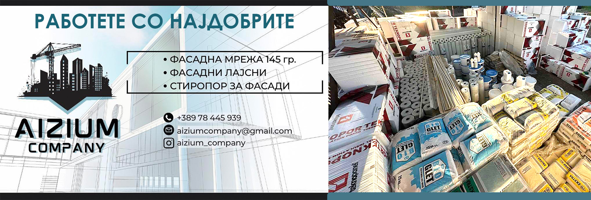 Со години искуство и доверба од страна на мајстори, градежници и инвеститори, AIZIUM израсна во една од најдобрите дестинации за набавка на фасадни материјали во регионот.